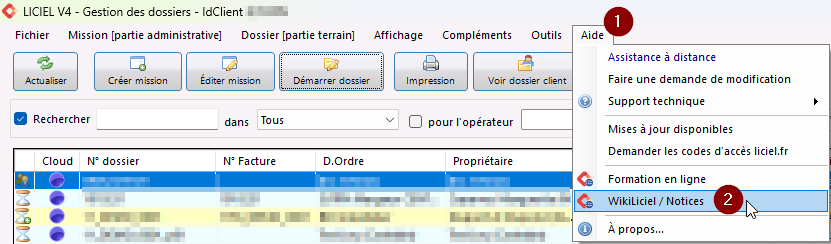 Sur LICIEL V4 dans la page de gestion des dossiers :