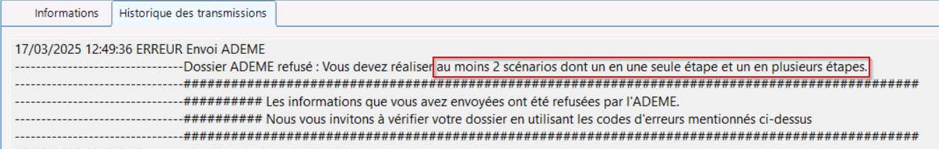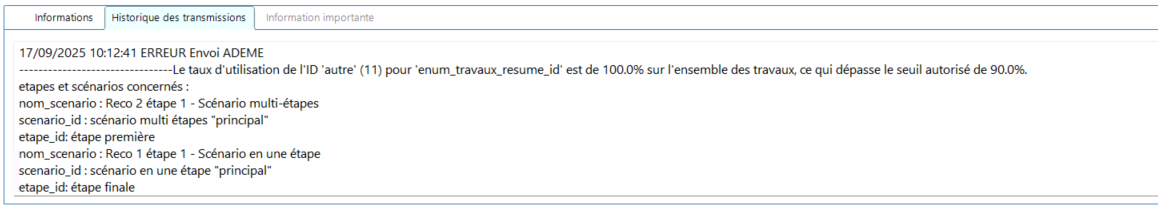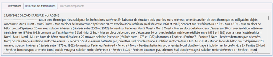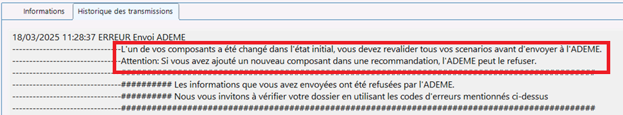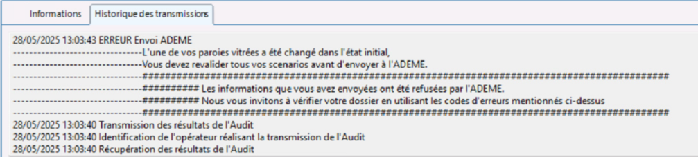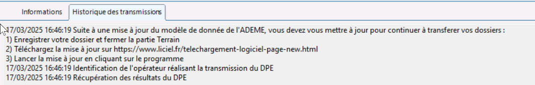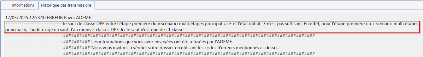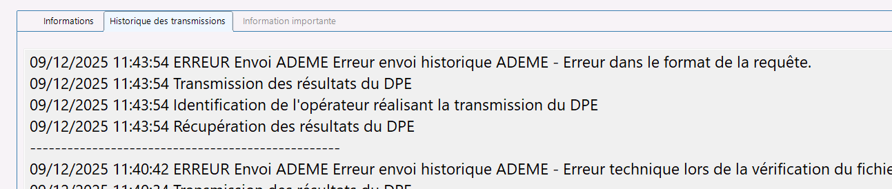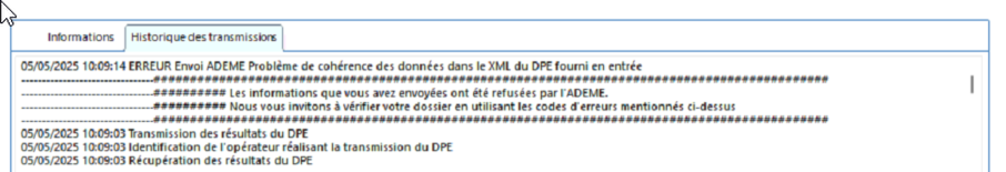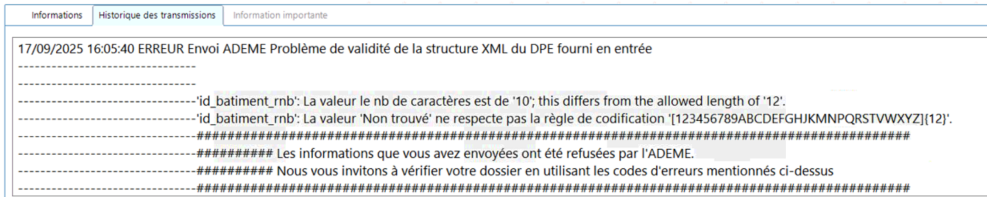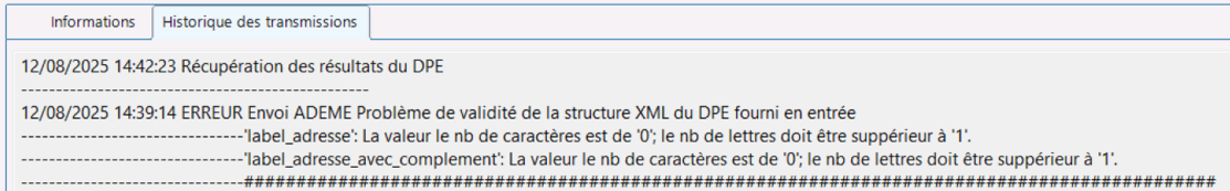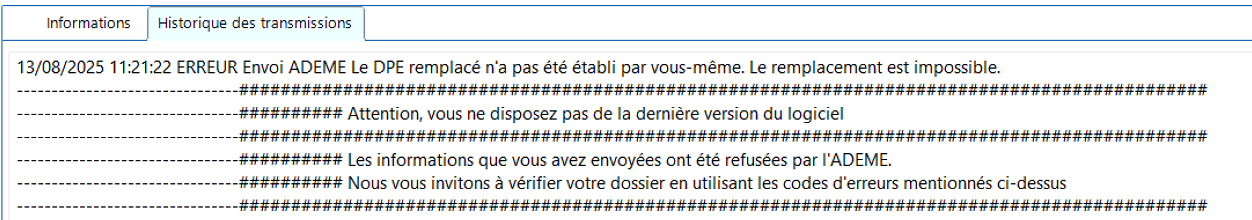 | Erreur lors de la transmission du fichier d'historique à l'ADEME pour un DPE |