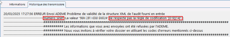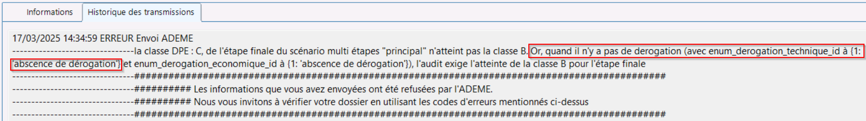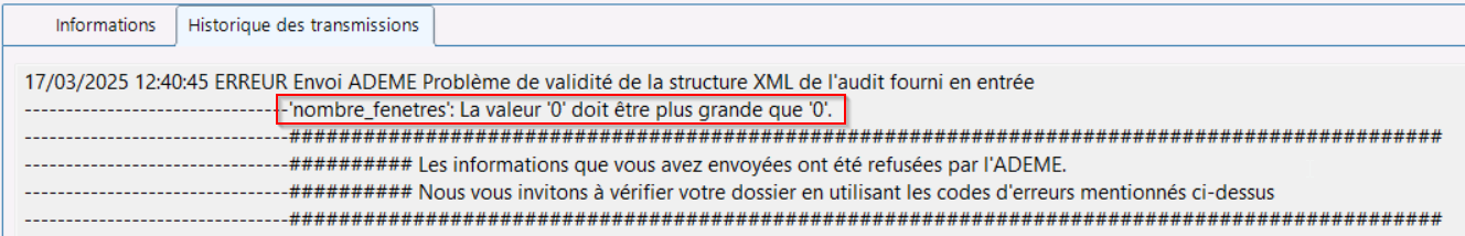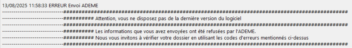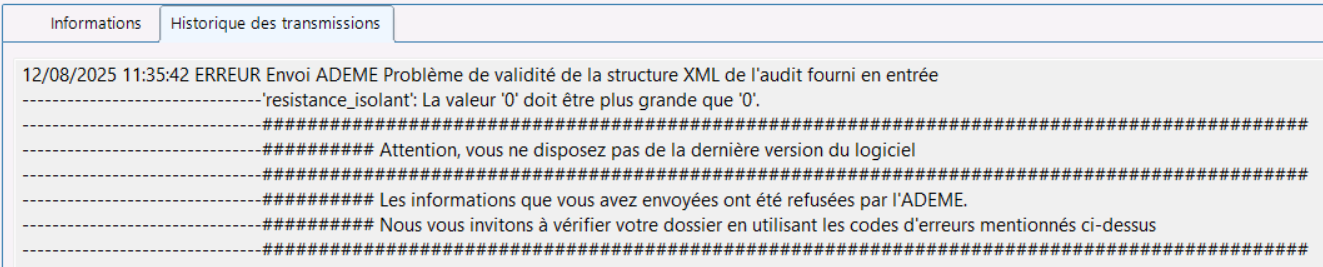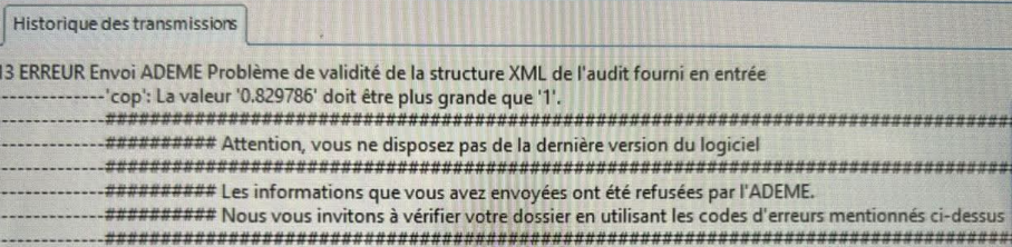 Messages d'erreur lors de l'envoi des Audits - DPE à l'Ademe