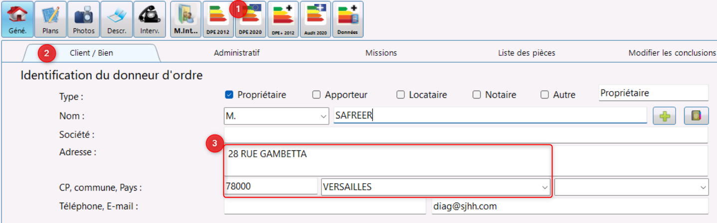 | L'adresse du donneur d'ordre n'est pas saisie |