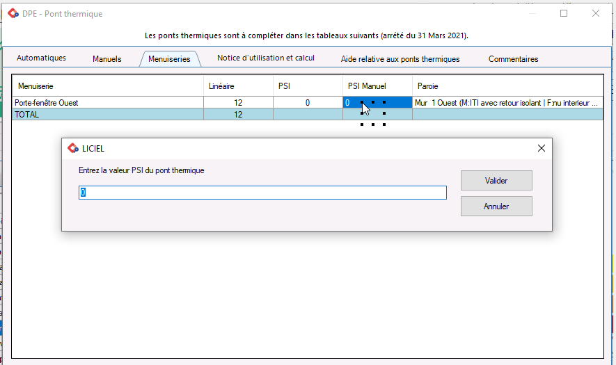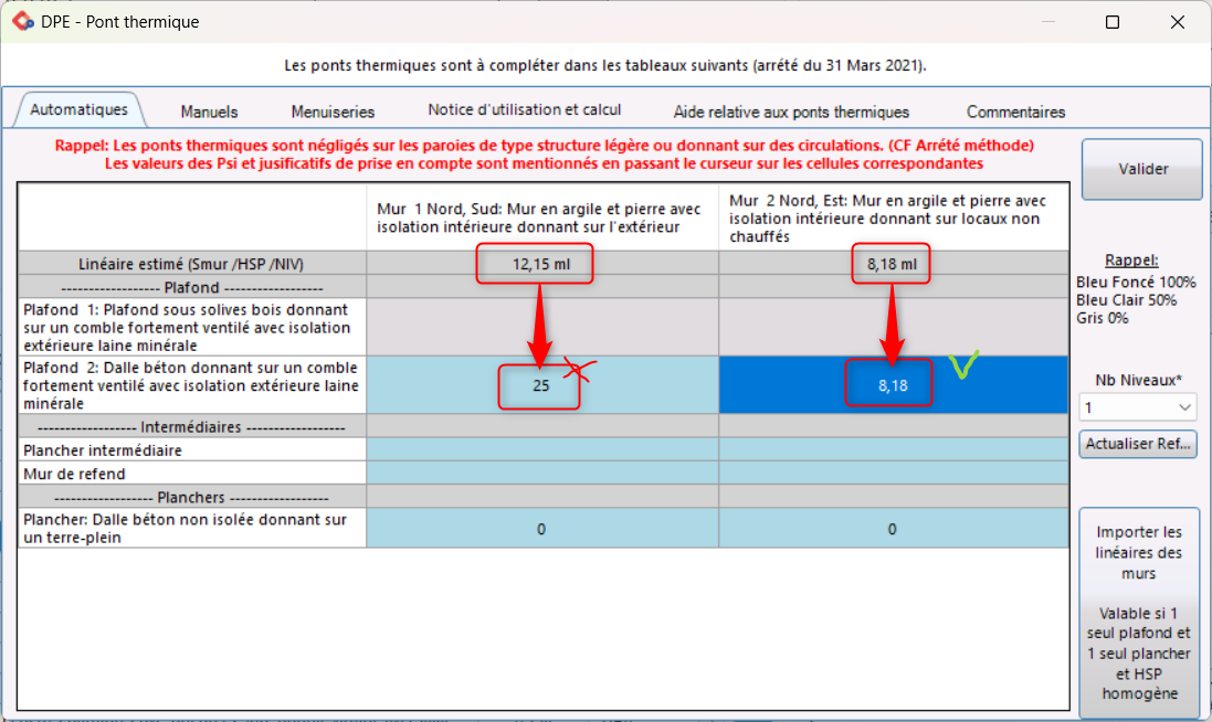 | Problème pont thermique le linéaire saisie est plus long que le linéaire du mur |
