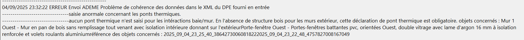 ou le message pour l'envoi d'un DPE : "Problème de cohérence des données dans le XML du DPE fourni en entrée"