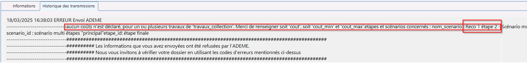| Problème de régulation lors de l'envoi à l'Ademe |