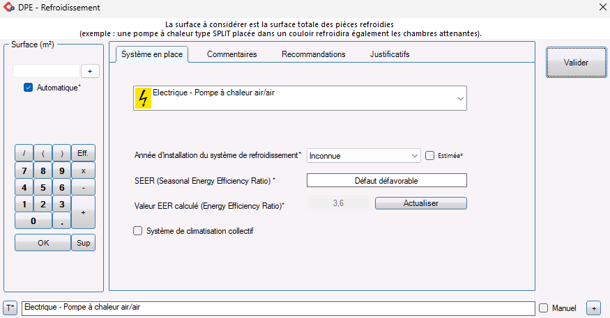 Ensuite, il faut saisir la climatisation lorsque vous avez une PAC comme ceci : pour le DPE :