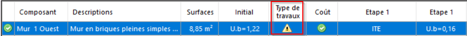 puis saisir manuellement tous les composants non présents dans l'assistant (Chauffage, ECS, ENR, clim) en double-cliquant dans la ligne concernant les composants et dans la colonne suivant l'étape où vous souhaitez mettre la recommandation. Pensez à saisir dans le chiffrage le type de travaux si vous avez ceci :
