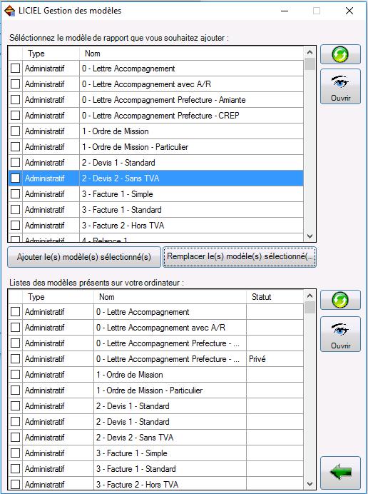Cliquer ensuite sur le bouton « Ajouter le(s) modèle(s) sélectionné(s) » ou « Remplacer le(s) modèle(s) sélectionné(s) » afin de valider votre choix.