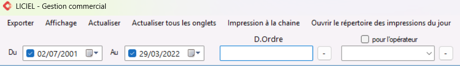 Sélectionner par date, donneur d'ordre et par opérateur :
